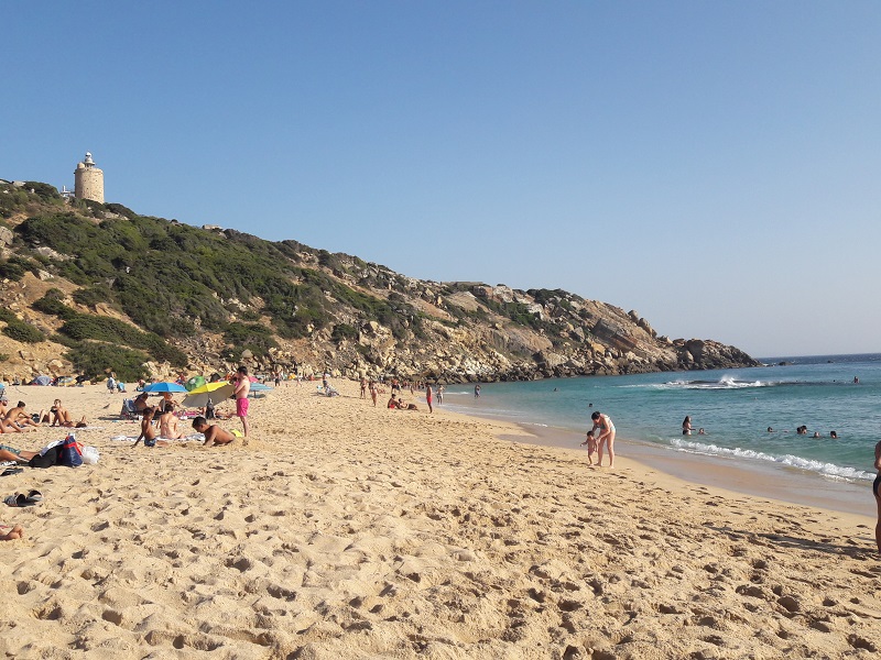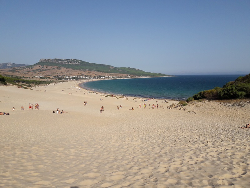 Pláž Playa de Bolonia je klasická pláž s množstvom turistov, silným vetrom a ľadovým Atlantikom. Všimla som si, že sem chodí veľa rodín s deťmi a aj psičkári. Aj napriek značke zákazu vstupu so psom, tu majú štvornohí miláčikovia svoje miesto. Čo však robí pláž Playa de Bolonia zaujímavou, je jedna z najväčších dún v Európe Duna de Bolonia, ktorá sa nachádza na jej konci. My sme si po dni vylihovania spravili malú „turistiku“ a vyšli na pieskovú dunu. Meria 30 metrov a kontrast medzi 2 vegetačnými pásmami je ohromujúci.